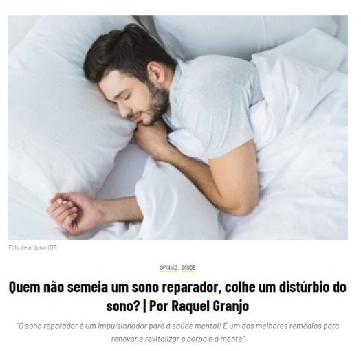 "Acrescento que é fundamental que defendamos práticas que promovam o sono saudável em contextos comunitários e sociais. (...) Ao reconhecer e valorizar a importância do sono no nosso quotidiano, poderemos promover uma cultura de sono saudável, e assim, melhorar a qualidade de vida da população." Artigo de opinião de Raquel Granjo, vogal da Delegação Regional do Sul, para ler no Postal do Algarve.