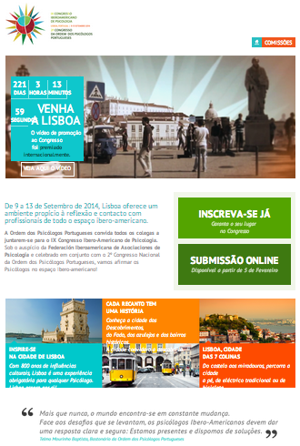 A partir deste momento poderá aceder ao site do Congresso, que vai ter sempre novidades ao longo das semanas, e reservar já o seu lugar. Se tiver alguma questão sobre o Congresso pode usar o endereço electrónico fiapopp2014congresso@ordemdospsicologos.pt