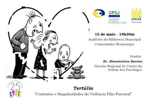 Diamantino Santos é o orador convidado que estará no dia 15 de Maio de 2015, pelas 14h30, no Auditório da Biblioteca Municipal Comendador Montenegro para ministrar a Tertúlia "Contextos e Singularidades da Violência Filio-Parental".