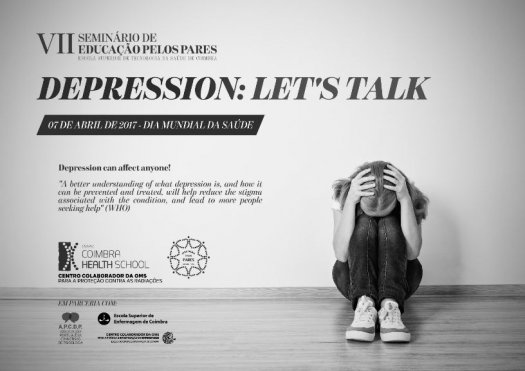 A Delegação Regional do Centro (DRC) vai assinalar o Dia Mundial da Saúde associando-se ao VII Seminário - Educação pelos Pares, promovido pelas Comunidades escolares ESEnfC e ESTeSC da Coimbra Health School. Cristina Quadros, Presidente da DRC estará presente na Sessão de Abertura deste seminário, que este ano tem como tema central a Depressão.