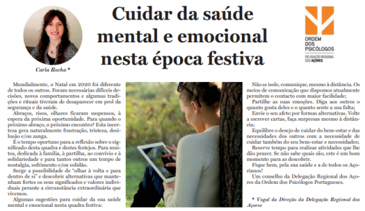 Mundialmente, o Natal em 2020 foi diferente de todos os outros. Foram necessárias difíceis decisões, novos comportamentos e algumas tradições e rituais tiveram de desaparecer em prol da segurança e da saúde. Clique em "Ler mais" para ler algumas sugestões para cuidar da sua saúde mental e emocional nesta quadra festiva.