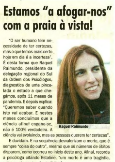 Segundo Raquel Raimundo, Presidente da DRS da OPP, "a vacina é a nossa "praia à vista", mas paradoxalmente é agora que os fenómenos de negação aparecem com mais força." Clique em "Ler mais" para ler o artigo completo.
