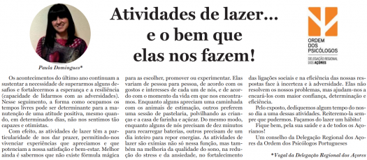 "As actividades de lazer são exímias não só nessa função, mas também na melhoria da qualidade do sono, na redução do stress e da ansiedade, no fortalecimento das ligações sociais e na eficiência das nossas respostas face à incerteza e à adversidade. Elas não resolvem os nossos problemas, mas ajudam-nos a encará-los com maior confiança, determinação e eficiência", escreve Paula Domingues, vogal da DRA da OPP. Clique em "Ler mais" para ler os conselhos da DRA sobre este tema.