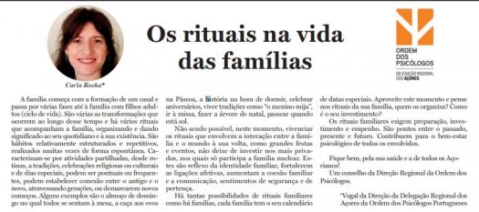 "Os rituais familiares exigem preparação, investimento e empenho. São pontes entre o passado, presente e futuro. Contribuem para o bem-estar psicológico de todos os envolvidos." Para continuar a ler o artigo de opinião de Carla Rocha, Membro da Direcção da DRA, clique em "Ler Mais".