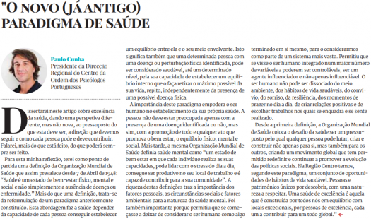 Neste artigo, Paulo Cunha, presidente da DRC da OPP, escreve "sobre excelência da saúde, dando uma perspetiva diferente, mas não nova, ao pressuposto do que esta deve ser, a direção que devemos seguir e como cada pessoa pode e deve contribuir". Clique em "Ler mais" para ler a sua reflexão sobre o tema.