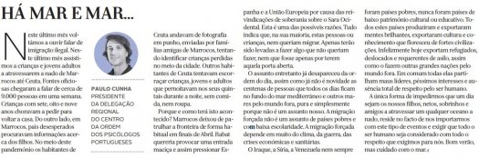 "A única forma de impedirmos que um dia sejam os nossos filhos, netos, sobrinhos e amigos a atravessar um qualquer oceano a nado, reside no facto de nos importarmos com este tipo de eventos e exigir que todo o ser humano seja considerado com todo o respeito que exigimos para nós". Clique em "Ler mais" para ler a reflexão de Paulo Cunha, Presidente da DRC da OPP, sobre a imigração ilegal.