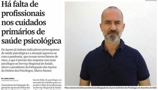 Segundo Marco Santos, Presidente da DRA da OPP, "já tínhamos nos Açores, antes da pandemia, alguns indicadores a nível da saúde psicológica e mental, que nos chamavam a atenção para a necessidade de um reforço dos psicólogos no Serviço Regional de Saúde", tendo a situação piorado com a pandemia. Clique em "Ler mais" para ler a reflexão de Marco Santos sobre o tema.