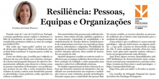 "(...) a resiliência é o nosso músculo psicológico – algo que todos temos, em alguma medida –, e que pode e precisa ser desenvolvido ao longo da vida. E como qualquer músculo, deixa-nos mais fortes, mais aptos para suportar maiores esforços e torna-nos progressivamente mais eficientes", escreve Cristina do Canto Tavares. Clique em "Ler mais" para ler mais sobre a resiliência nas pessoas, equipas e organizações.