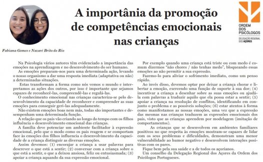 "O conhecimento emocional nas crianças caracteriza-se pelo desenvolvimento da capacidade de reconhecer e compreender as suas emoções para conseguir geri-las adequadamente. Não existem emoções boas nem más, todas são importantes e desempenham uma determinada função", escrevem Fabiana Gomes e Nazaré Brito do Rio, da DRA da OPP. Clique em "Ler mais" para ler o artigo completo.