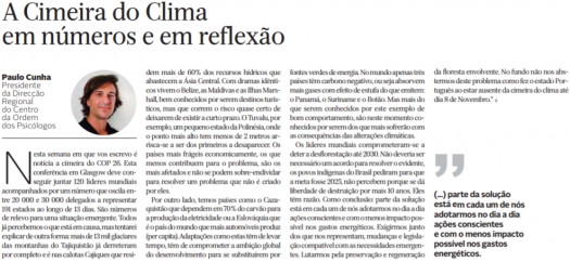 "(...) parte da solução está em cada um de nós adotarmos no dia a dia ações conscientes e com o menos impacto possível nos gastos energéticos. Exigirmos junto dos que nos representam, mudanças e legislação compatível com as necessidades emergentes", escreve Paulo Cunha, Presidente da DRC da OPP. Clique em "Ler mais" para ler o artigo.