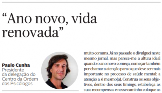 "(...) parece-me a altura ideal quando o ano novo começa, começar também por chamar a atenção para o que deve ser mais importante no processo de saúde mental: a atenção a si mesmo(a). Construa os seus objetivos, dentro dos seus timings, estabeleça as suas recompensas e nesse caminho coloque as pessoas que mais gosta", escreve Paulo Cunha, Presidente da DRC da OPP. Clique em "Ler mais" para ler o seu artigo.
