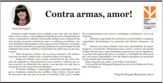 "Não pudemos evitar a guerra entre a Rússia e a Ucrânia, mas estamos conscientes do papel que podemos ter na promoção de uma cidadania mais justa, solidária e respeitadora das diferenças." Artigo de opinião no Diário dos Açores escrito por Paula Domingues, Vogal da Delegação Regional dos Açores.