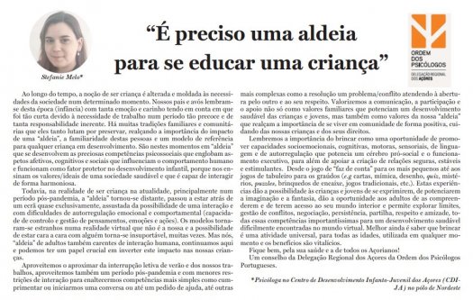 " Há muitas tradições familiares e comunitárias que eles tanto lutam por preservar, realçando a importância do impacto de uma “aldeia”, a familiaridade destas pessoas e um modelo de referência para qualquer criança em desenvolvimento". A opinião da psicóloga Stefanie Melo, no Diário dos Açores.