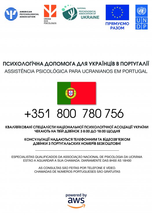 No âmbito da articulação institucional internacional, foi também disponibilizado pela congénere Ucraniana, para diversos países (incluindo Portugal) um número gratuito: +351 800 780 756. Esta assistência psicológica para Ucranianos em Portugal funciona diariamente das 8h00 às 18h00.