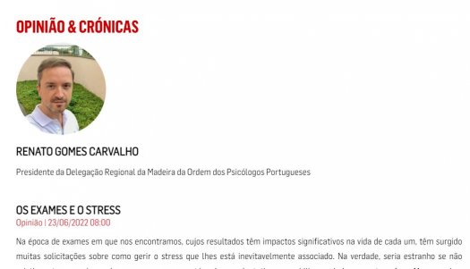 "Se níveis muito elevados de stress se associam a perturbações no desempenho, então o desafio é fazer com que o mesmo não atinja uma intensidade que seja disruptiva." Artigo de opinião de Renato Carvalho, Presidente da Delegação Regional da Madeira, no Jornal da Madeira.