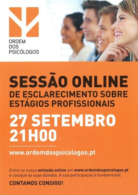 A Ordem dos Psicólogos irá realizar, no próximo dia 27 de Setembro, pelas 21 horas, uma sessão de esclarecimento online, sobre Estágios Profissionais.