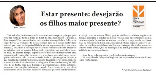 "Que, na aceitação e no amor, possamos encontrar o antídoto para o nosso stress." Artigo de opinião de Sara Vieira, psicóloga convidada para escrever no Diário dos Açores (rúbrica da DRA).