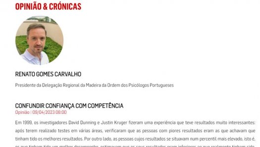 "O facto de alguém pensar que é bom em algo não diz muito necessariamente sobre a sua competência (quão é realmente bom em algo). Algo para termos presente, quer na forma como olhamos para nós próprios, no nosso processo de autoconhecimento, quer na forma como encaramos as instituições, a vida e o mundo." Artigo de opinião de Renato Gomes Carvalho, presidente da Delegação Regional da Madeira, no Jornal da Madeira.