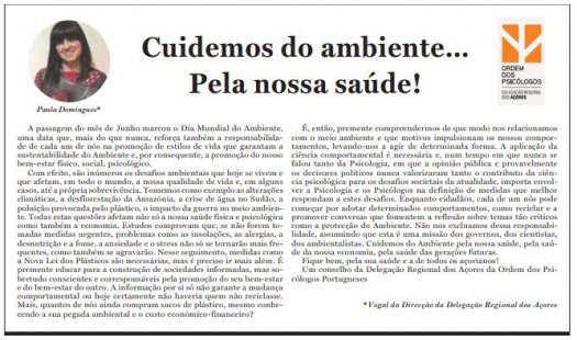 "É, então, premente compreendermos de que modo nos relacionamos com o meio ambiente e que motivos impulsionam os nossos comportamentos, levando-nos a agir de determinada forma." Artigo de opinião de Paula Domingues, no Diário dos Açores.