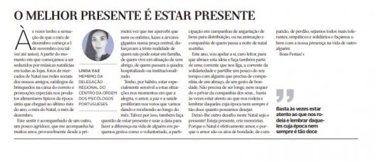 "Basta às vezes estar atento ao que nos rodeia e lembrar daqueles cuja época nem sempre é tão doce." Artigo de opinião de Linda Vaz, presidente da DRC, no Diário de Coimbra.