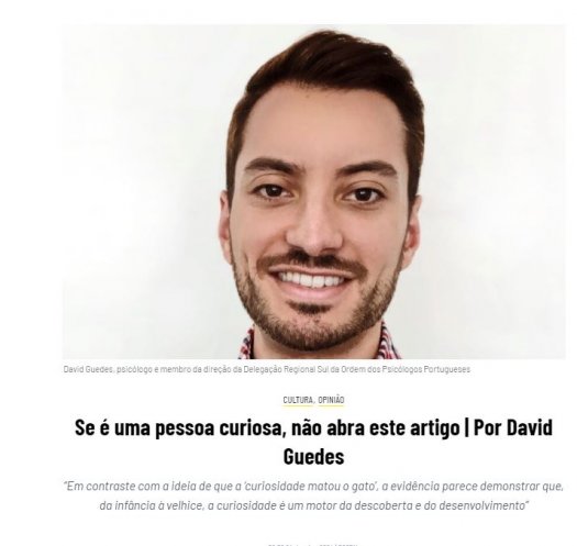 "Em contraste com a ideia de que a 'curiosidade matou o gato', a evidência parece demonstrar que, da infância à velhice, a curiosidade é um motor da descoberta e do desenvolvimento.” Artigo de opinião de David Guedes, membro da direcção da Delegação Regional do Sul, para ler no Postal do Algarve.