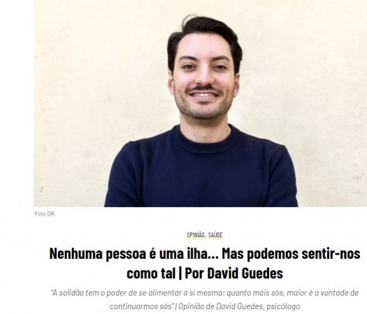 "A solidão pode ser um sentimento difícil de definir e também por isso difícil de identificar. Pode existir na presença de outras pessoas, mas pode também não ser sentido por alguém que vive só. É um sentimento pessoal, mais profundo, de falta de ligação aos outros, seja porque as relações pessoais são escassas ou simplesmente não suficientemente satisfatórias." Artigo de opinião de David Guedes. vogal da Delegação Regional do Sul, para ler no Postal do Algarve.