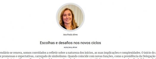 "Aceitar que a vida é feita de ciclos – inícios, fins e (re)inícios – e distinguir entre o que podemos ou não controlar são aprendizagens fundamentais. Tal como uma criança que dá os primeiros passos, os adultos também procuram apoio nas transições. Este processo fortalece a resiliência, essencial para a saúde psicológica." Artigo de opinião de Ana Paula Alves, presidente da Delegação Regional da Madeira, para ler no Jornal da Madeira.