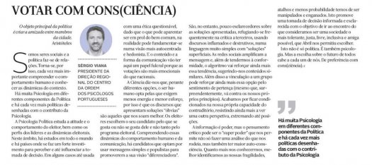 "Há muita Psicologia em diferentes componentes da Política e há cada vez mais políticas desenhadas com o contributo da Psicologia." Artigo de opinião de Sérgio Viana no Jornal Diário de Coimbra.