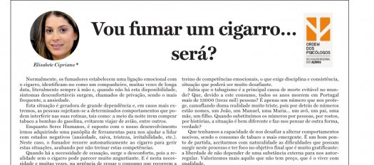 Vou fumar um cigarro...será? 19.maio.2025 Em: Delegação Regional Açores "Sabia que o tabagismo é a principal causa de morte evitável no mundo?" Artigo de opinião de Elisabete Cipriano, na página da DRA no Diário dos Açores. Clique aqui para aceder.