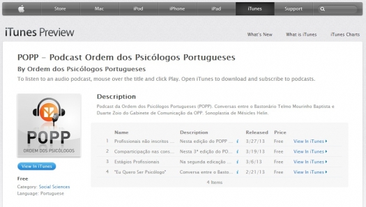 Podcast da Ordem dos Psicólogos disponível no iTunes